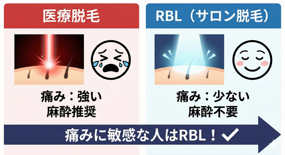 医療脱毛vsRBL(サロン脱毛)!痛みに敏感な人はどっちを選ぶべき?