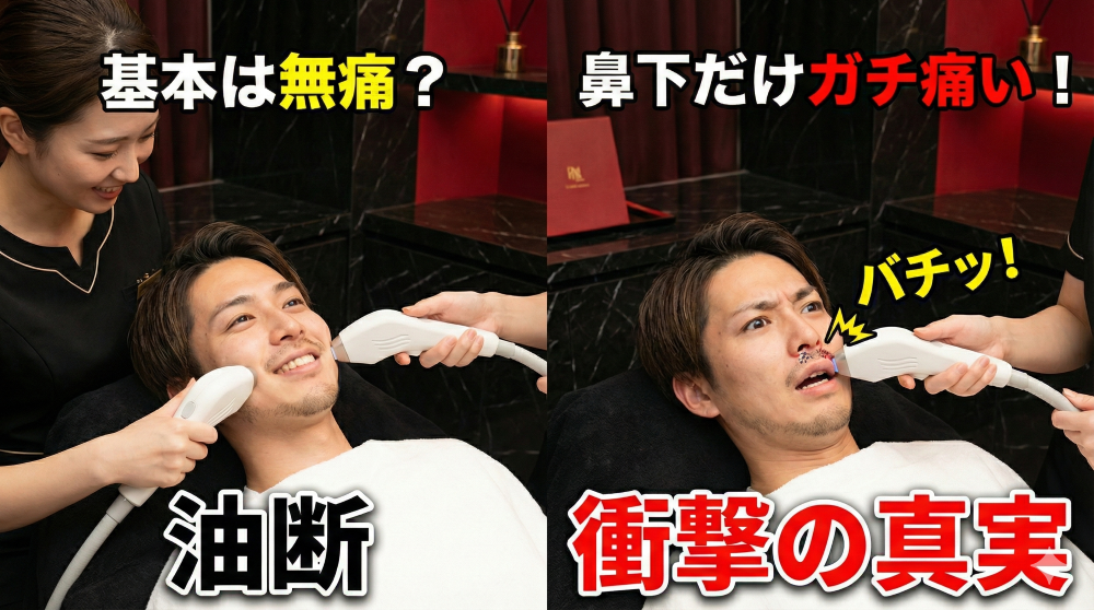 「鼻下がバチッと痛い」と聞くと怖くなるかもしれませんが、重要なのは「それでも医療脱毛に比べれば圧倒的にマシ」だということです。